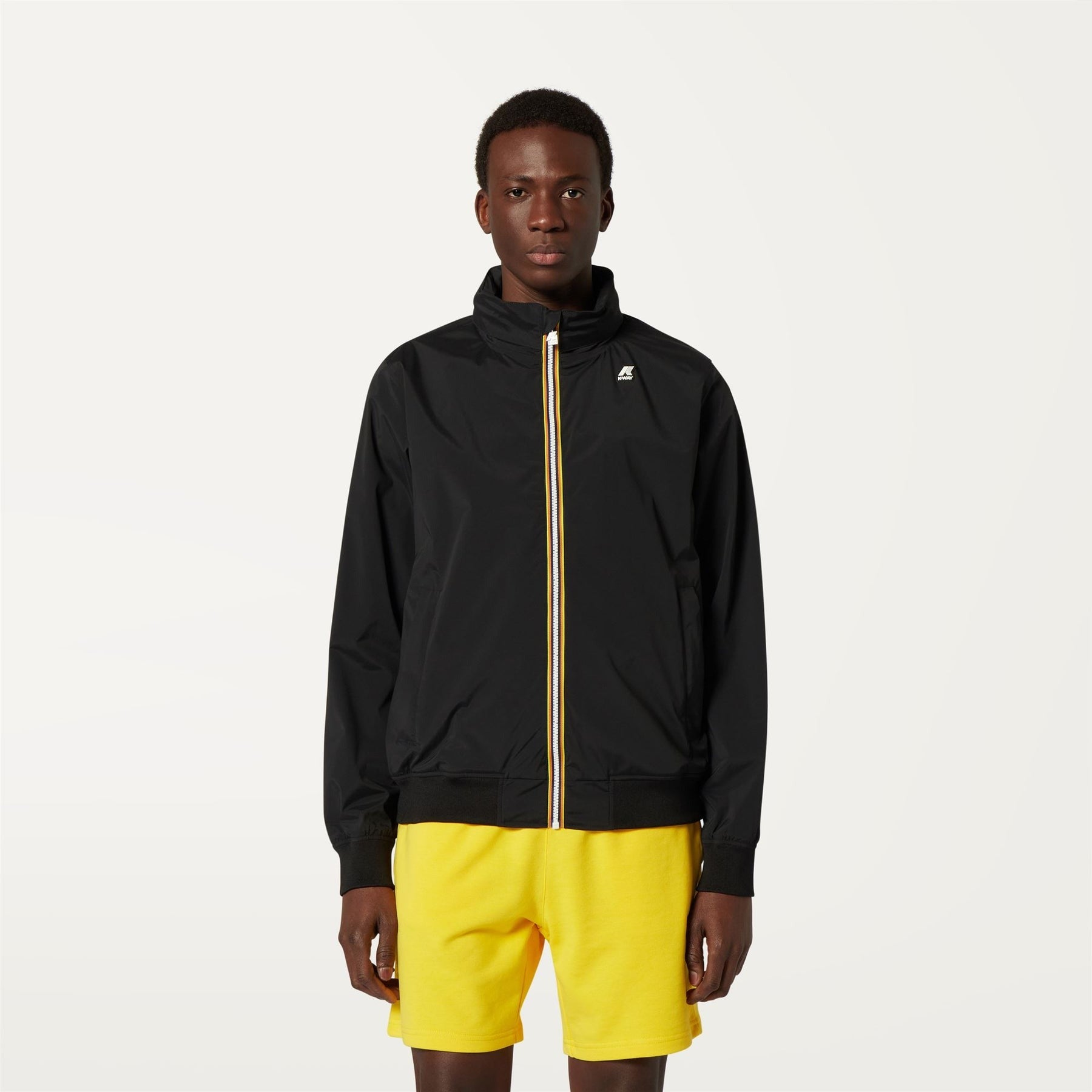 La giacca corta da uomo Amaury combina un look casual e cittadino con le caratteristiche tecniche K-Way. Il modello è realizzato in nylon stretch e rifinito con fodera in morbido jersey grigio melange solo su fronte e retro che garantisce massimo comfort, protezione e una sensazione piacevole a contatto con la pelle. L’interno è rifinito con la massima cura dei dettagli: le cuciture sono termonastrate e al punto vita è presente l’iconico tape multicolor K-Way per una nota distintiva e di carattere.