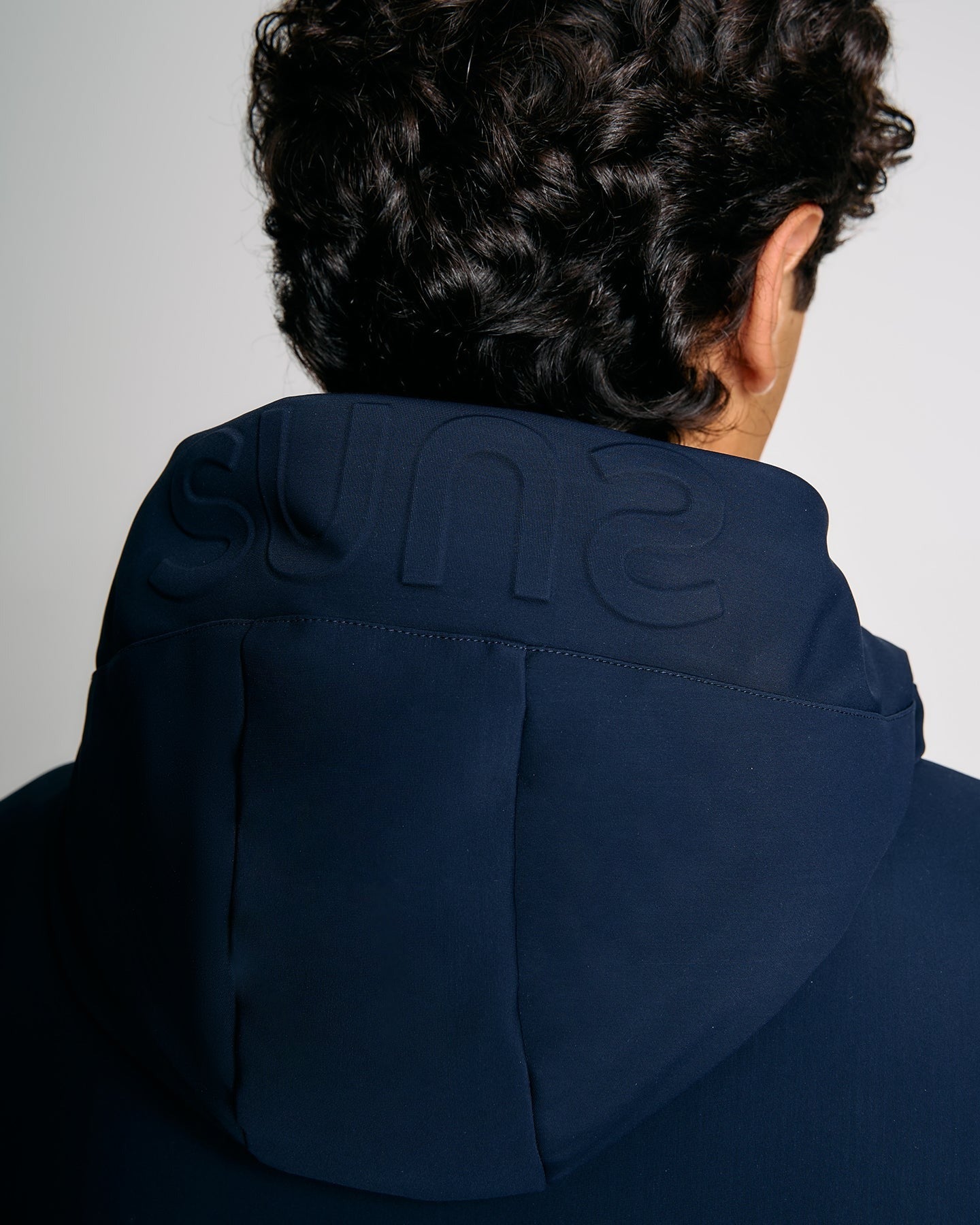Cappuccio integrato con dettaglio embossato: protezione e stile distintivo Suns.